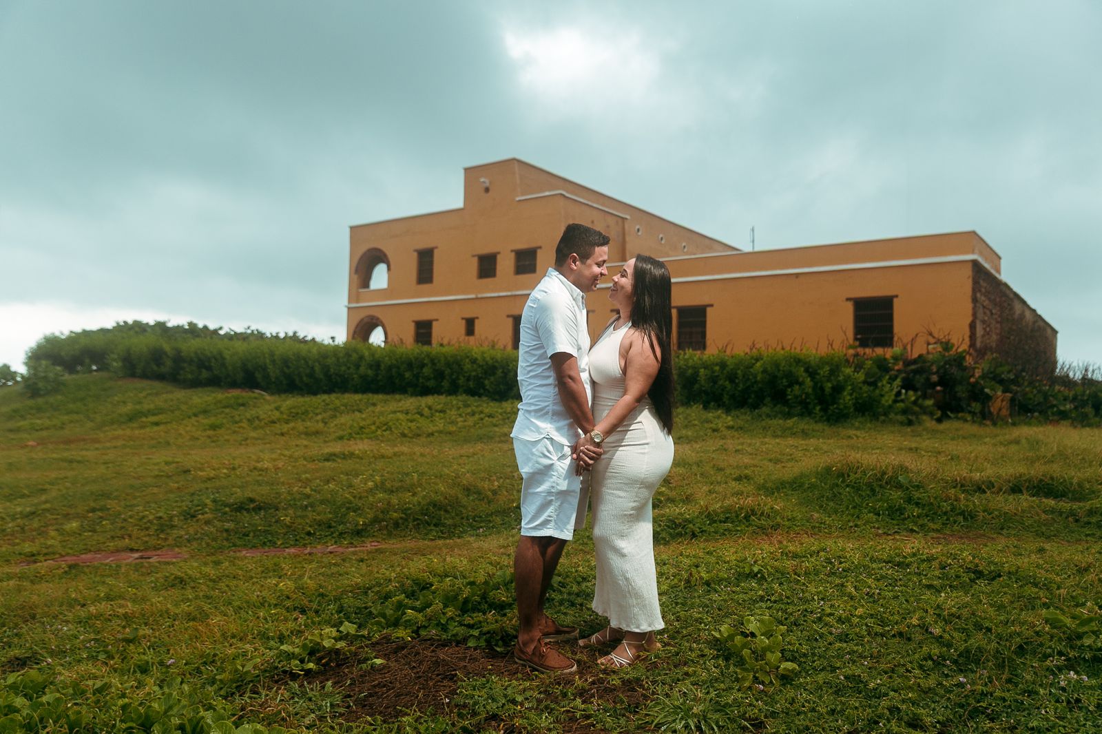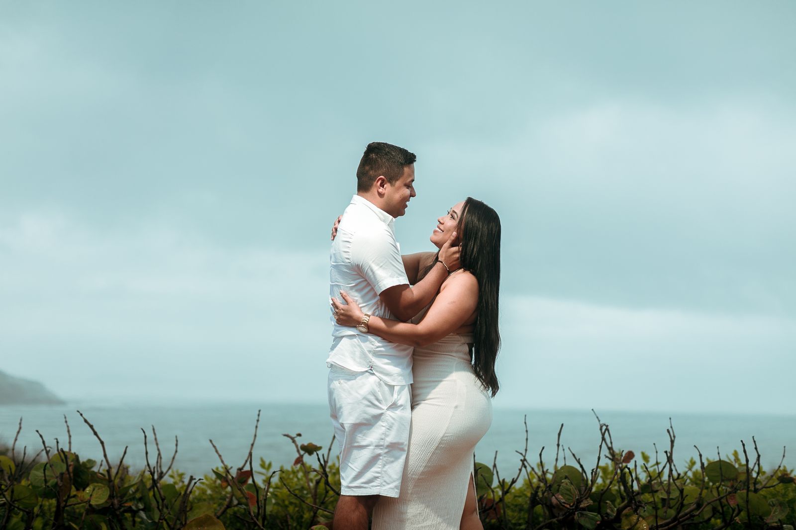 Guayabera manga larga blanca y pantalón de lino